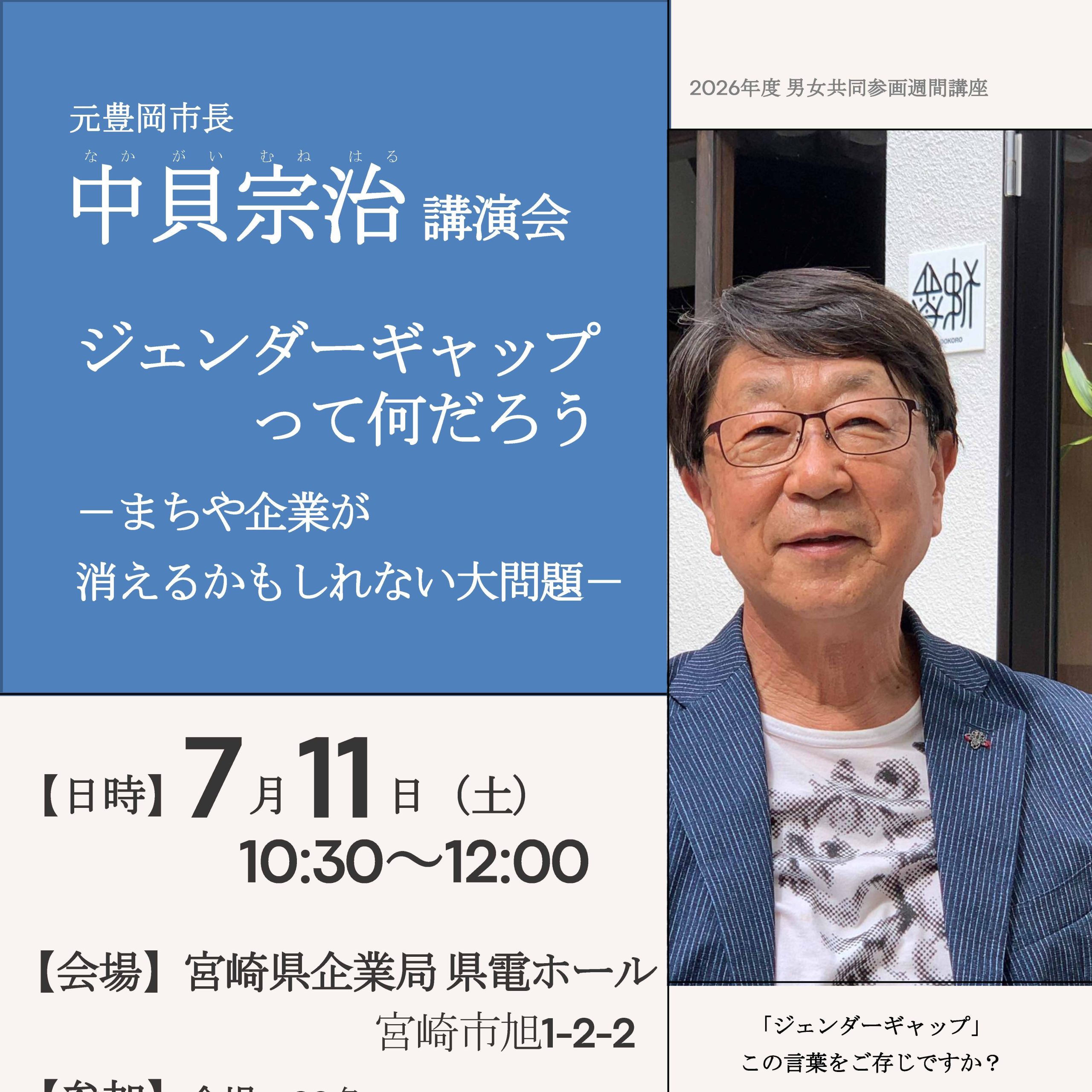 「ジェンダージャップ」の影響とその解消について、取組先進地、兵庫県豊岡市の元市長、中貝宗治さんに学ぶ講演会。